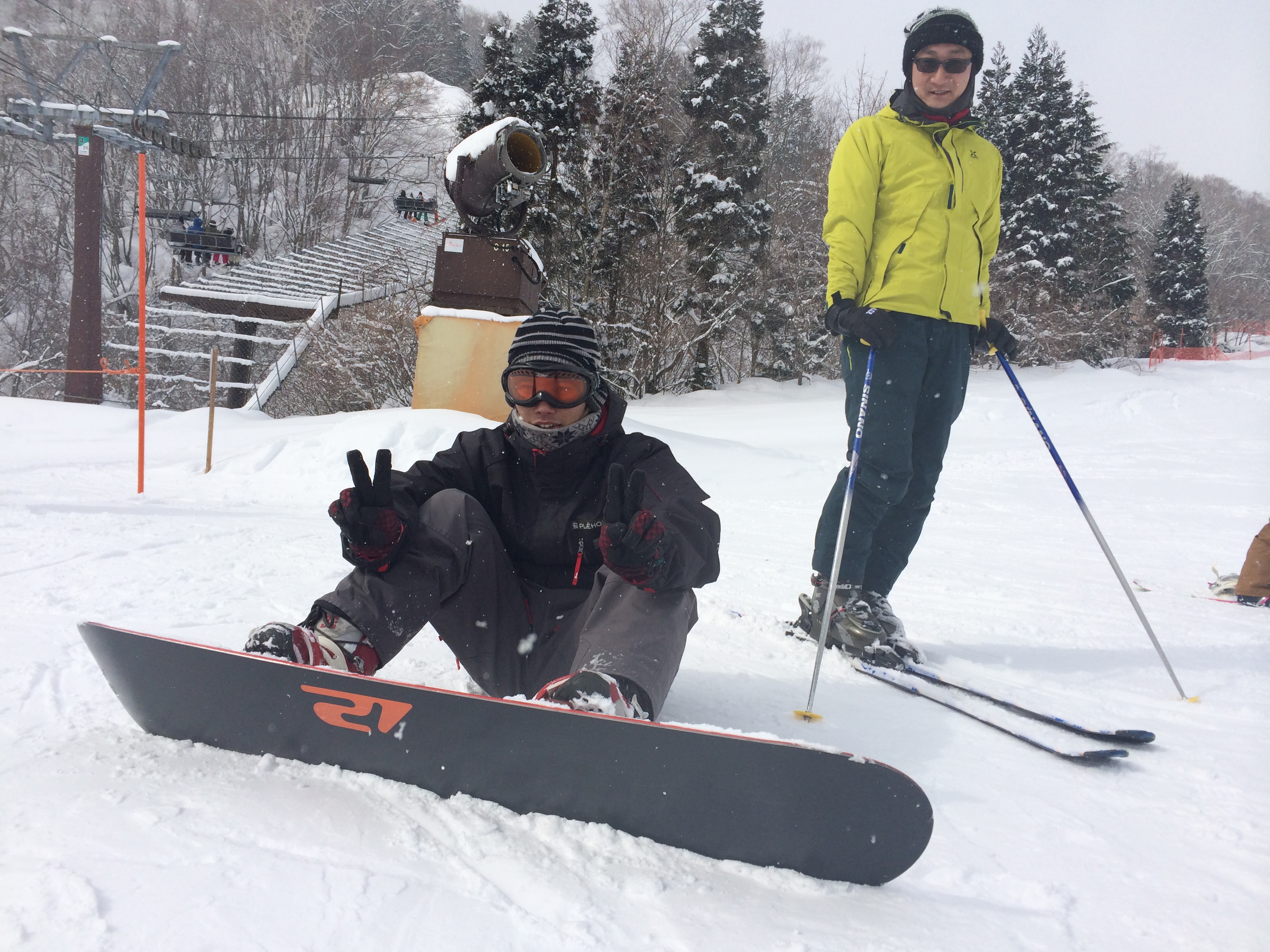 僕と院長は雪山経験者ですが、藤井君は初めてのスノーボードに挑戦しました。