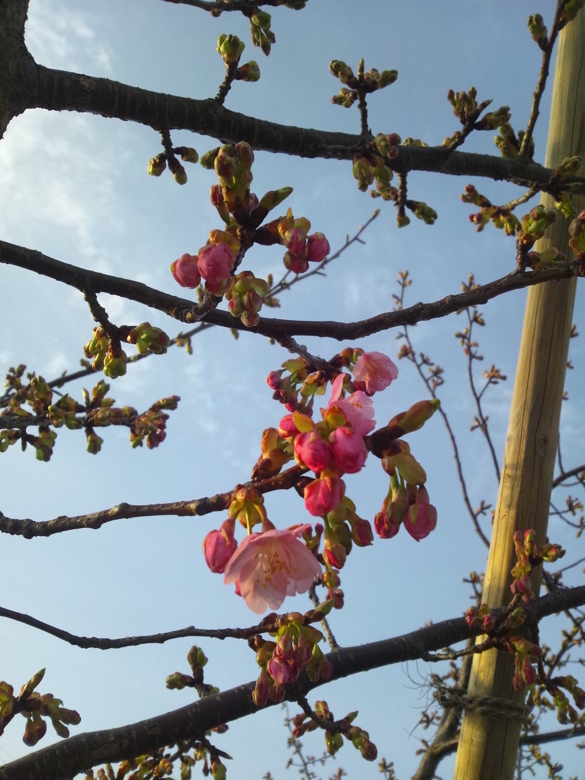 こちらは河津桜で、つぼみがぷっくりしてきました。