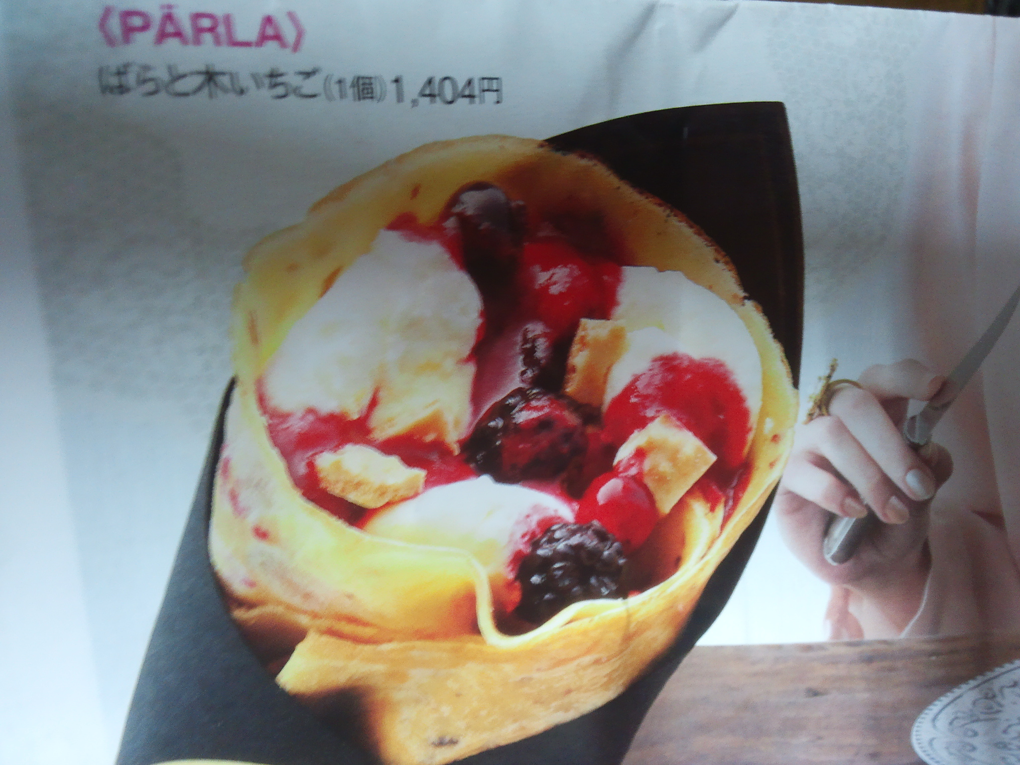 確か1日限定30食ぐらいだったと思いますが、他の「ばらと木いちごのクレープ」↓が1400円ぐらいなのに対し、