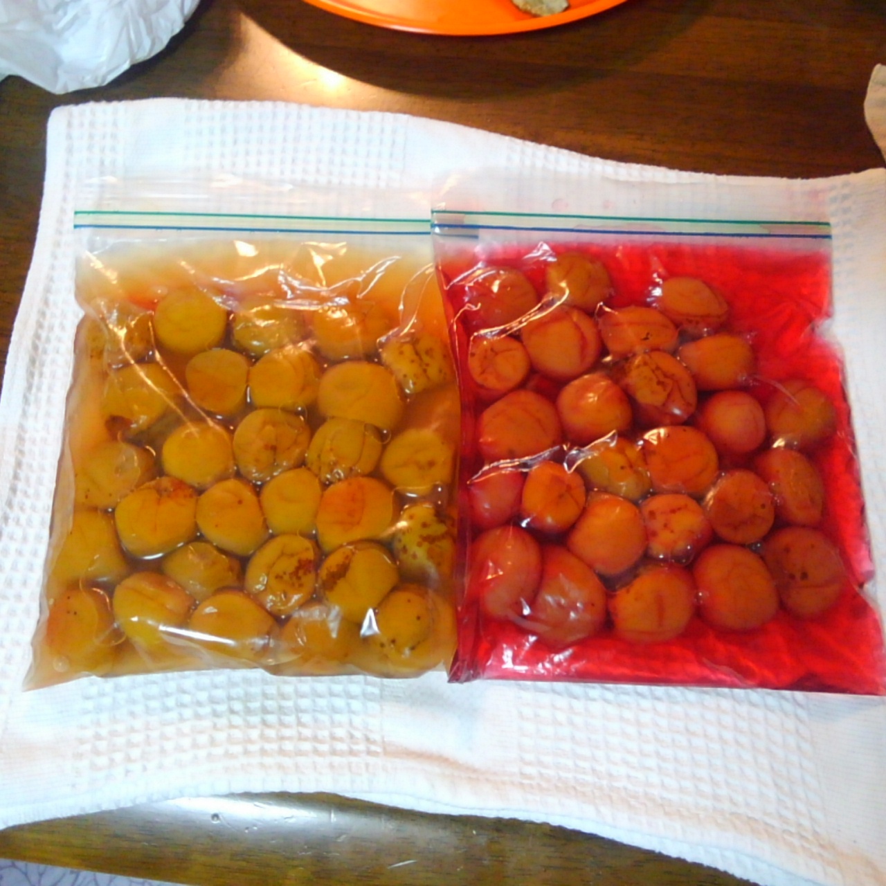 梅干しは樽に漬けて。。。と思っていたら、こうやって密封袋でもできるみたいですね![]()