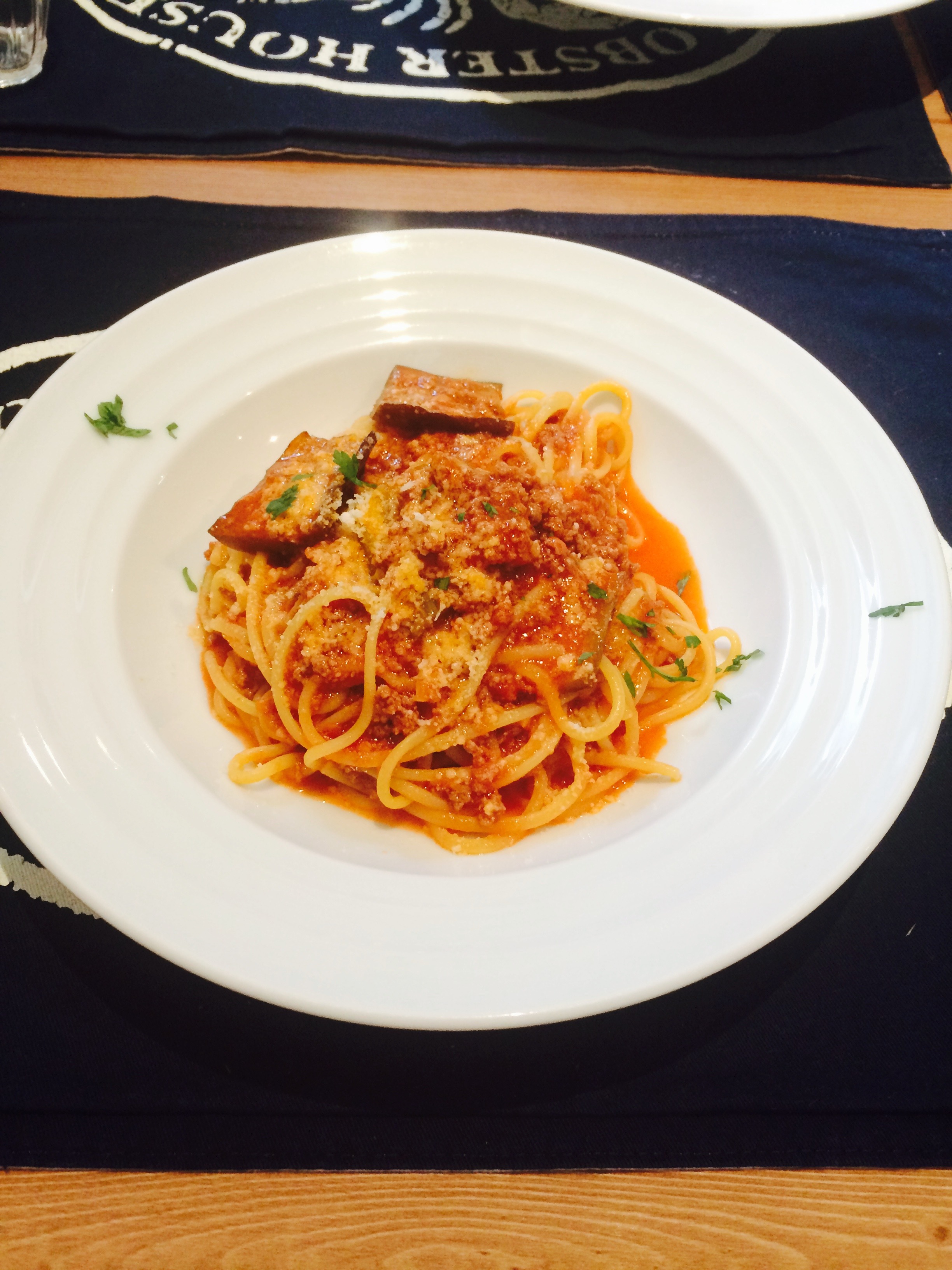 パスタはミートソースとウニのクリームソースです!生パスタです!