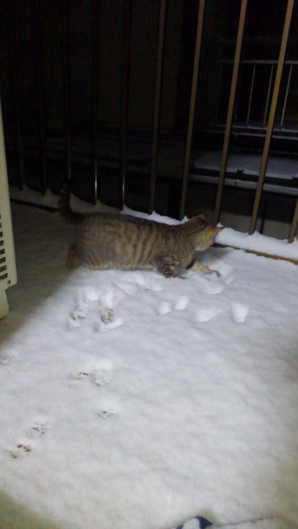 先日の雪の日です。雪を踏むと『ぽふっ』とするのが面白かったみたいで、長い時間ベランダで遊んでいました。