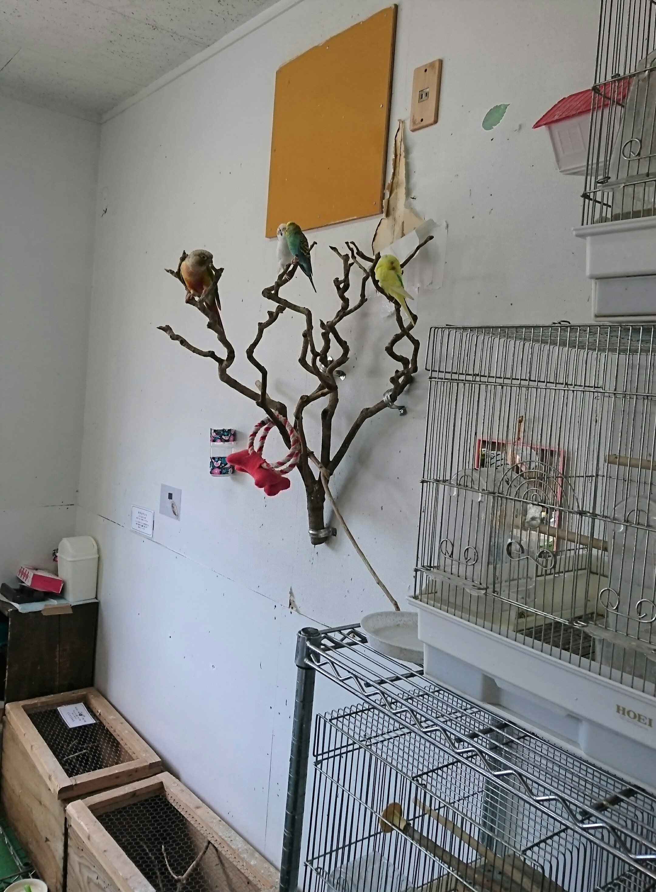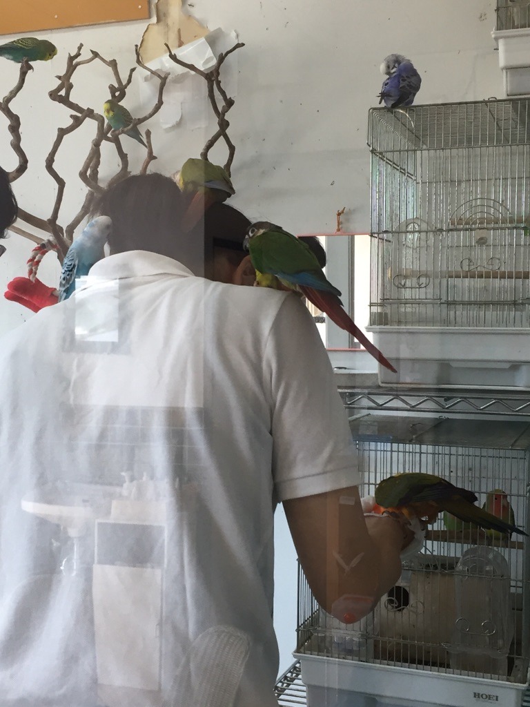 店内はふた部屋に別れており、ガラス張りの部屋の中には、鳥が放し飼いにされています。