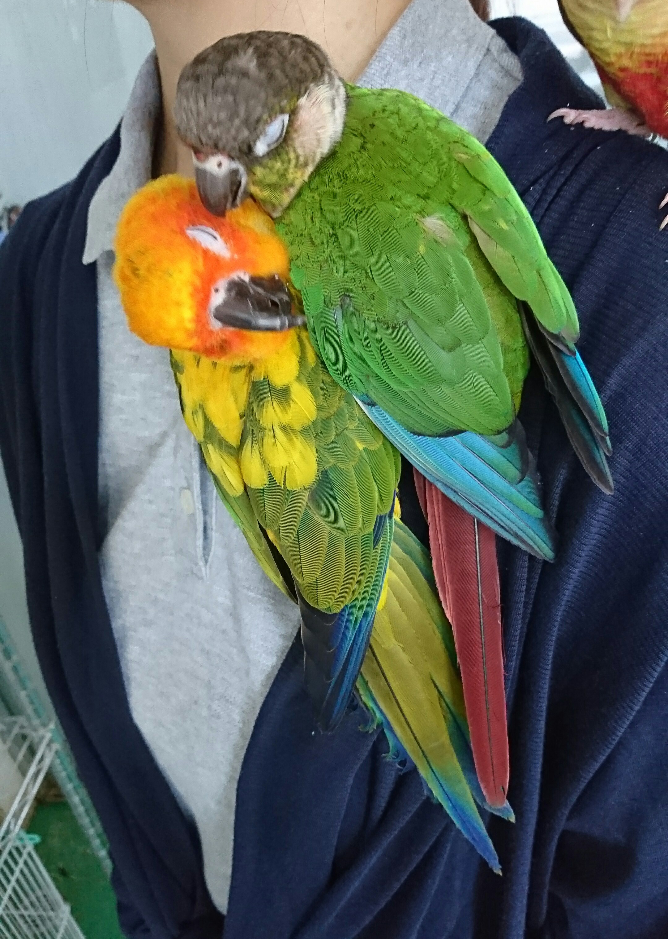 肩に乗っかったり、頭に乗っかったり、されます(笑)