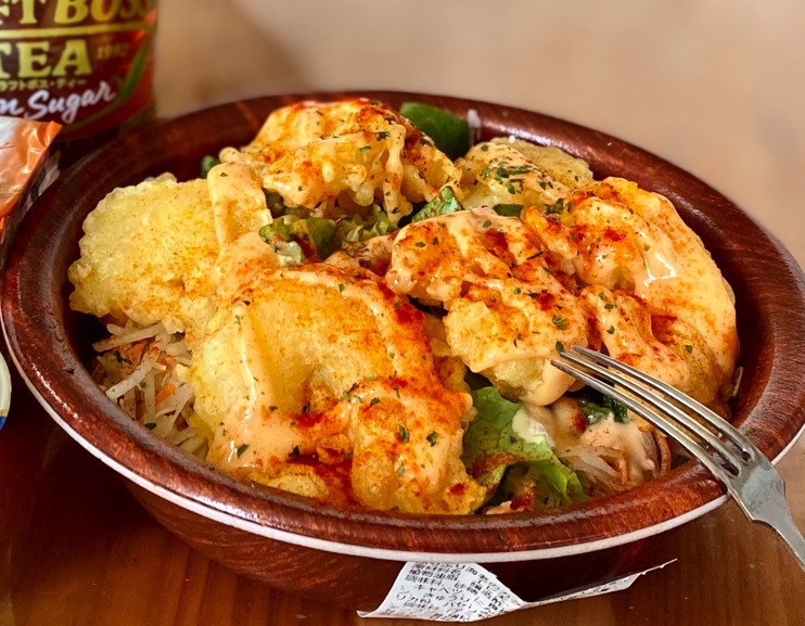エビが4個でサラダが小さい、、、しかも1個あたりだと実質値上げです。