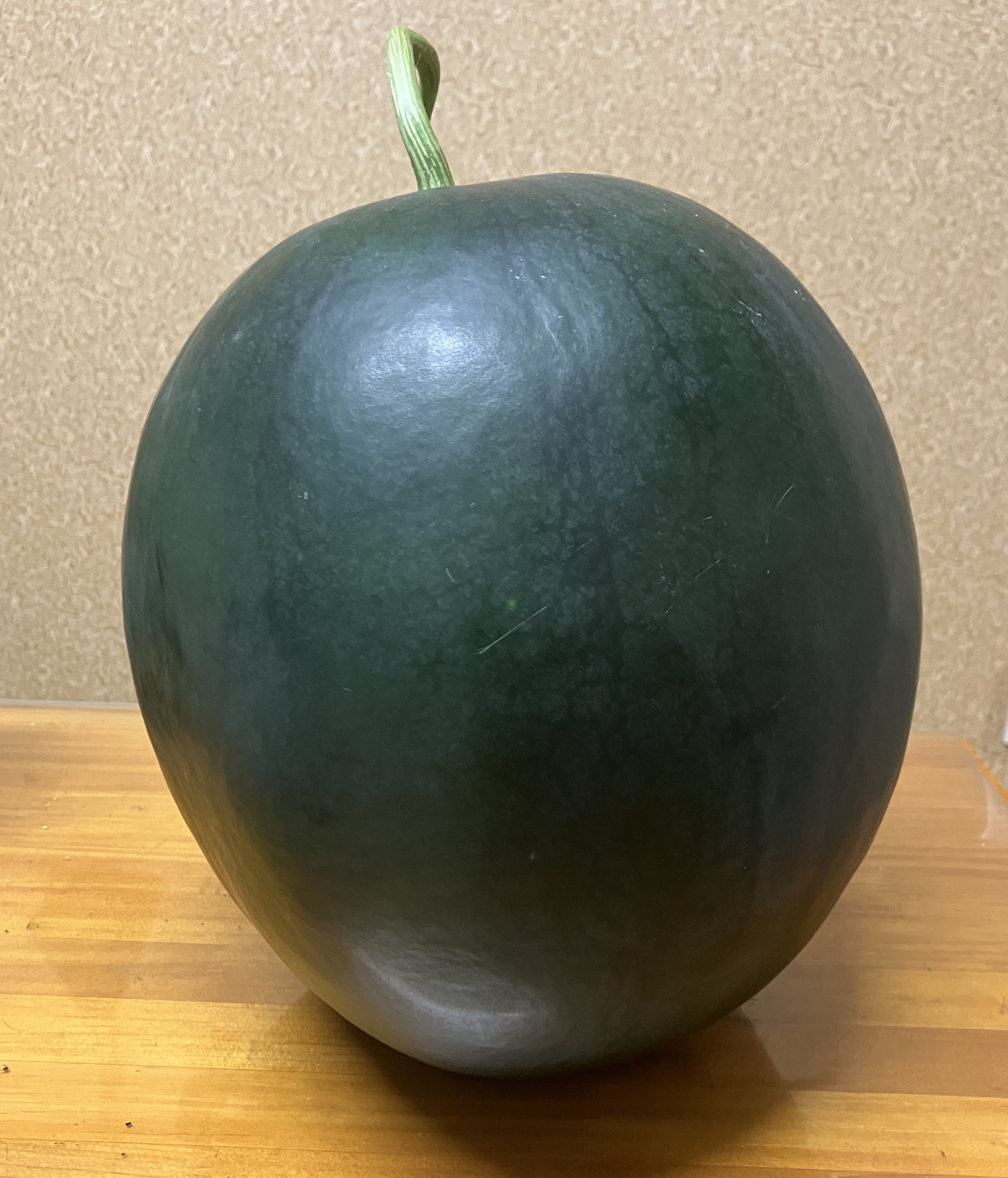 先日、スタッフの一人が実家で収穫したという大きくて立派なスイカを持ってきてくれました↓