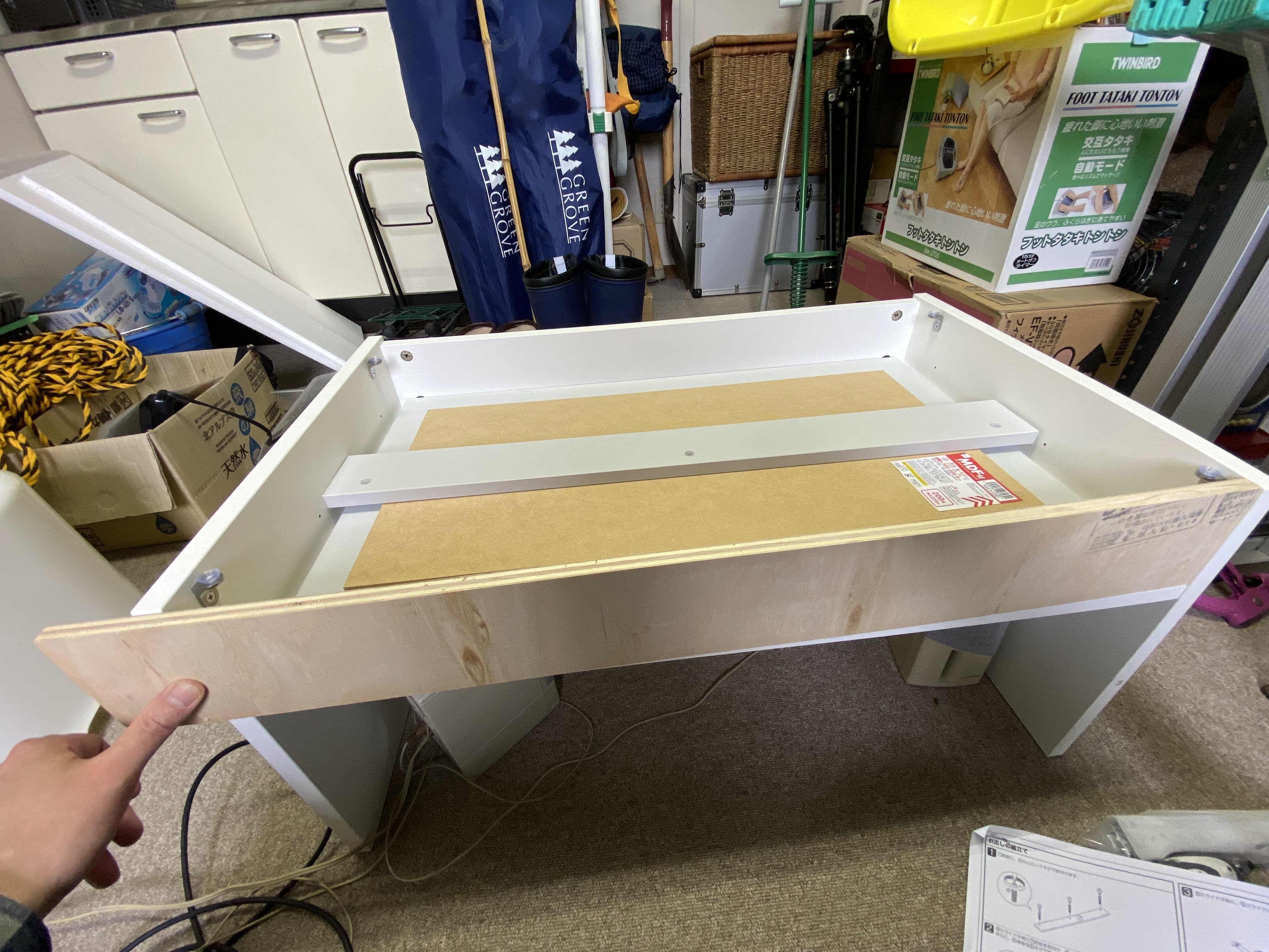 引き出しになっているタイプなので、前側はこんな感じに塞ぎます。
